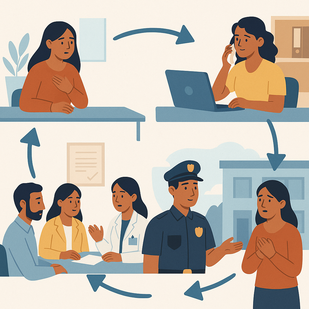 El primer paso suele ser la identificación o detección del caso, que puede darse en múltiples entornos: una consulta médica, una entrevista escolar, un servicio social comunitario, o incluso a través de una llamada de emergencia. Por eso, todo el personal de salud, educación, seguridad pública y trabajo social debe estar capacitado para reconocer señales de violencia, escuchar activamente y actuar conforme a protocolos establecidos.