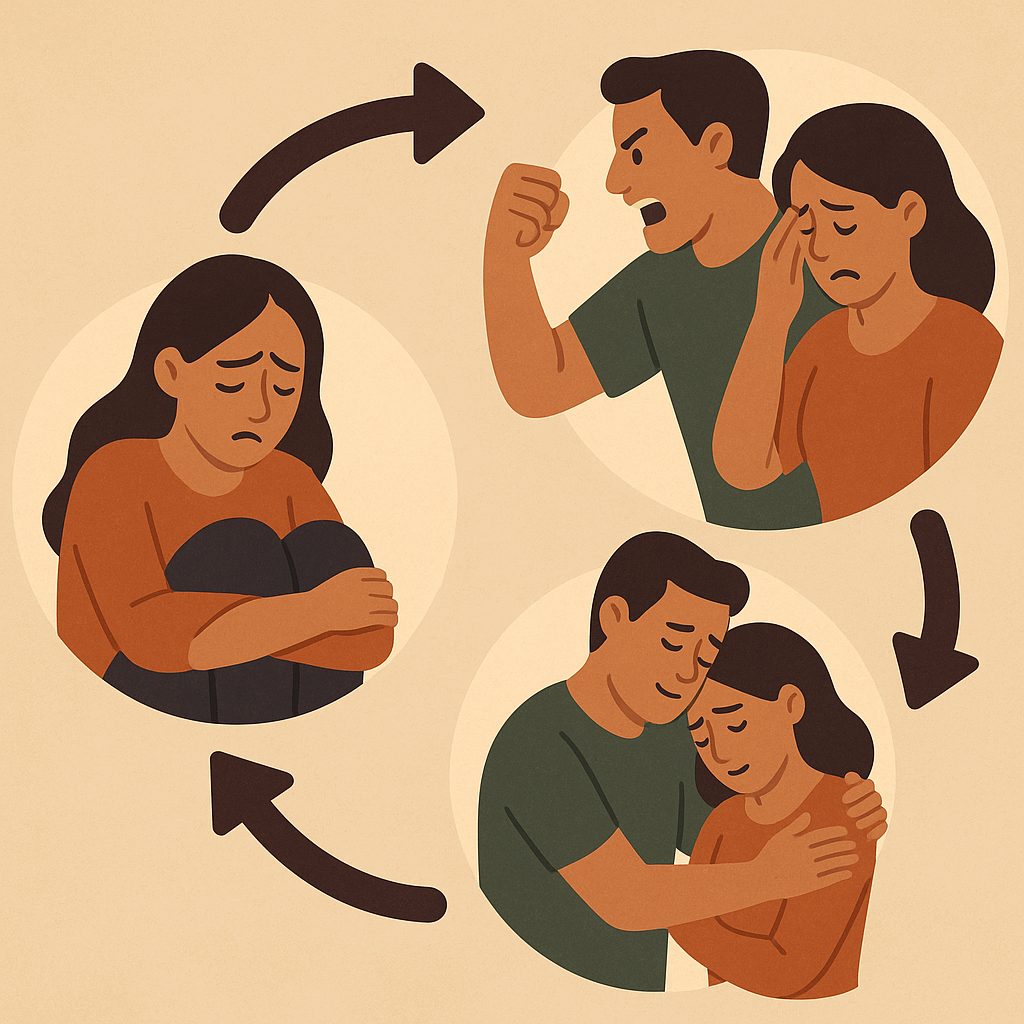 Después del episodio, se presenta la fase llamada luna de miel o reconciliación, donde el agresor muestra arrepentimiento, pide perdón, promete cambiar y actúa de forma afectuosa. En algunos casos, ofrece regalos, atenciones especiales o gestos de “reparación” que confunden a la víctima. Esta etapa puede generar la esperanza de que la situación mejorará, dificultando la denuncia o la decisión de terminar la relación. Sin embargo, este comportamiento suele ser parte del mismo ciclo de control.