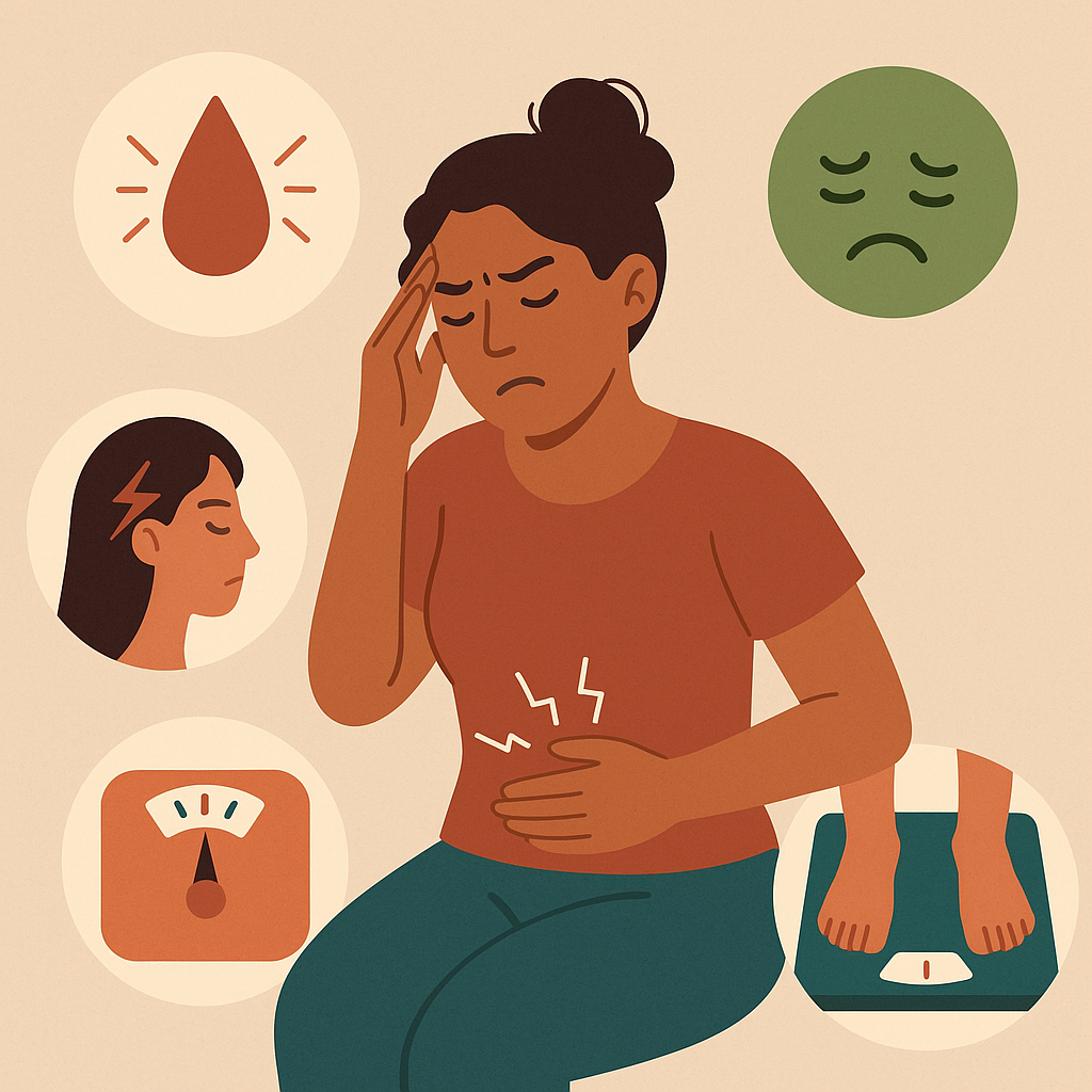 - Pueden causar alteraciones menstruales, náuseas, cefalea, aumento de peso.