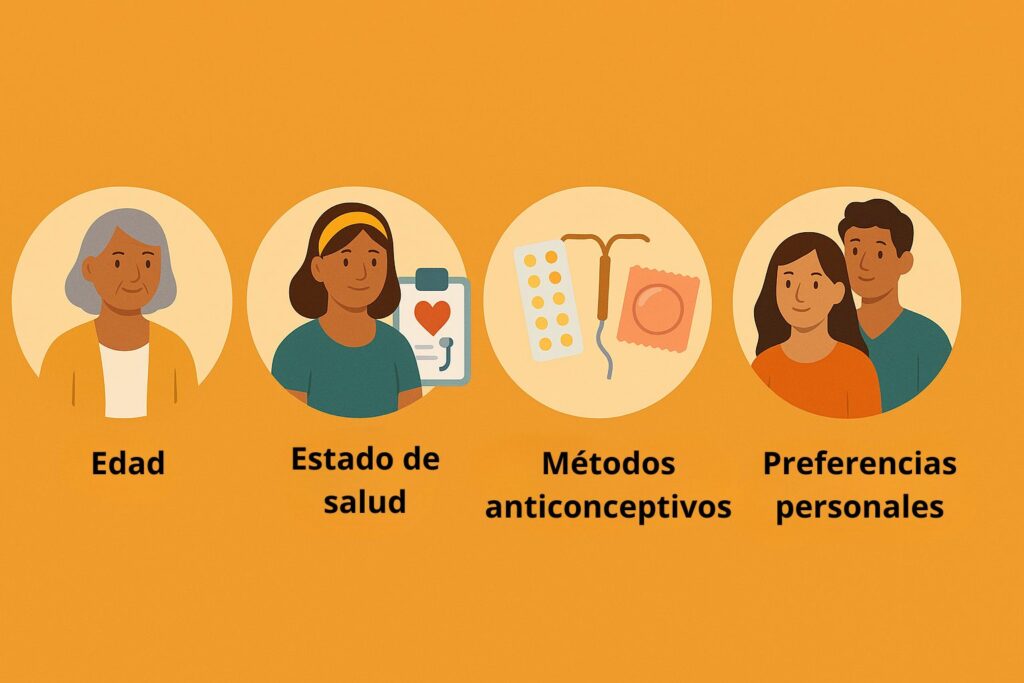 Uno de los primeros aspectos a considerar es la edad de la persona. Por ejemplo, en mujeres adolescentes, se debe asegurar un método que no interfiera con su desarrollo y que sea fácil de utilizar; en mujeres mayores de 35 años, especialmente si son fumadoras, deben evitarse métodos hormonales combinados debido al aumento del riesgo cardiovascular. La condición general de salud y la presencia de comorbilidades —como hipertensión, diabetes, epilepsia, obesidad, trombofilias, enfermedades hepáticas o cáncer hormonodependiente— son determinantes clave para elegir un método adecuado. En estos casos, los criterios médicos de elegibilidad establecidos por la OMS y adaptados por las guías nacionales son una herramienta esencial para tomar decisiones basadas en evidencia.