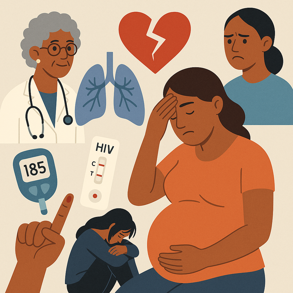 Entre las enfermedades crónicas más frecuentemente implicadas se encuentran la diabetes mellitus, la hipertensión crónica y diversas cardiopatías congénitas o adquiridas. Estas condiciones, si no son identificadas o controladas antes y durante la gestación, pueden descompensarse debido a las demandas fisiológicas del embarazo, aumentando el riesgo de complicaciones graves como preeclampsia sobreañadida, insuficiencia cardíaca o eventos vasculares severos. La falta de seguimiento especializado, el acceso limitado a medicamentos y la escasa coordinación entre niveles de atención contribuyen a este desenlace.