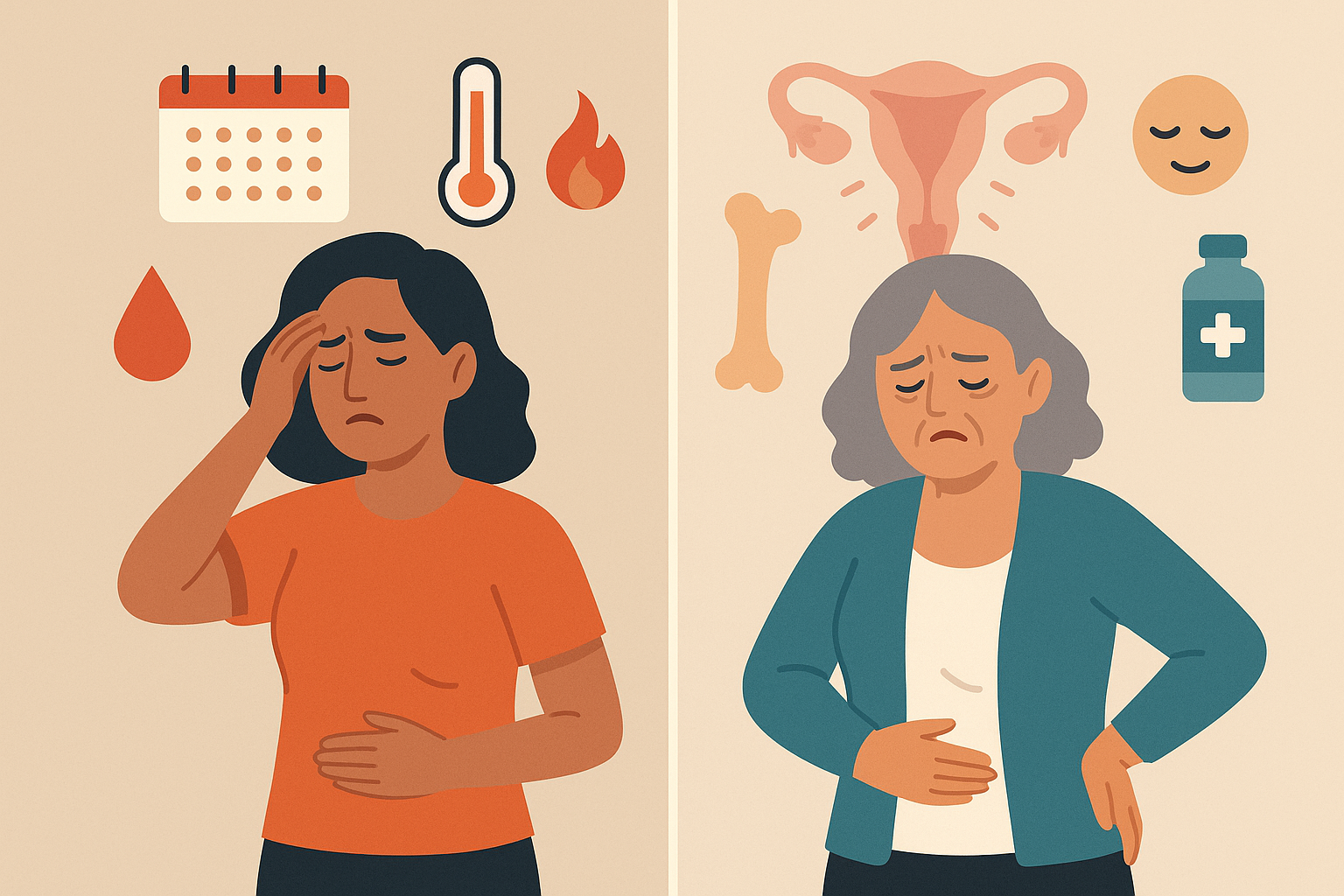 Es esencial diferenciar entre las distintas fases del proceso menopáusico. La premenopausia se refiere al periodo previo al cese menstrual definitivo, en el que aún hay ovulación, pero de forma irregular, y puede acompañarse de síntomas como alteraciones menstruales, bochornos o irritabilidad. La perimenopausia abarca tanto la premenopausia como el primer año posterior a la última menstruación. En esta etapa se experimentan fluctuaciones hormonales más marcadas, con síntomas que pueden interferir significativamente en la calidad de vida. Por otro lado, la postmenopausia corresponde al periodo que comienza después de los 12 meses sin menstruación, donde los niveles hormonales se estabilizan en valores bajos, pero persisten riesgos asociados a la hipoestrogenemia, como osteoporosis, atrofia urogenital y aumento del riesgo cardiovascular.